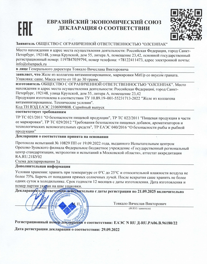 Т8 ERA MIT UP — это витаминизированное желе из морского коллагена с экстрактом граната (уролитина А), витамином С и SibXP Complex.